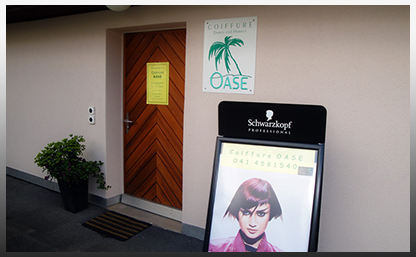 Der Coiffure Salon Oase befindet sich im langgezogenen Rain, auf der Anhöhung direkt neben der Hauptstrasse.